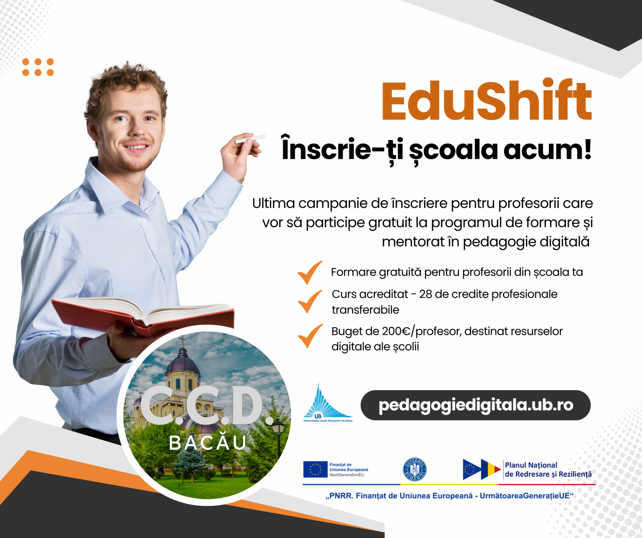 Nu ratați ultima șansă de a vă înscrie în Seria 3 (noiembrie-decembrie 2025) în cadrul proiectului de pedagogie digitală EduShift – GRATUIT (28 credite) – pedagogiedigitala.ub.ro